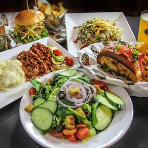 Residents can have breakfast in the cafรฉ. Drafts Sports Bar & Grill serves a selection of American dishes.